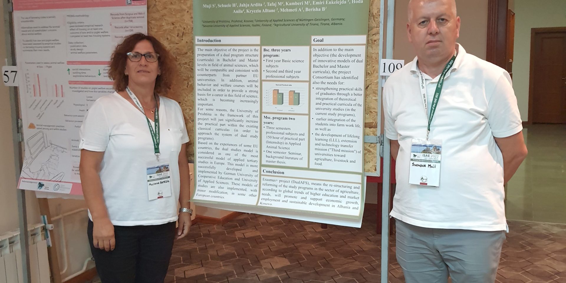 Representatives of the Faculty of Agriculture and Veterinary (Skender Muji and Alltane Kryeziu), University of Pristina “Hasan Prishtina”, participate in the ISAE World Congress 2022, held in Ohrid, North Macedonia. In this Congress, were presented the goals and achievements of the DualAFS Project, financed by the EU Commission.